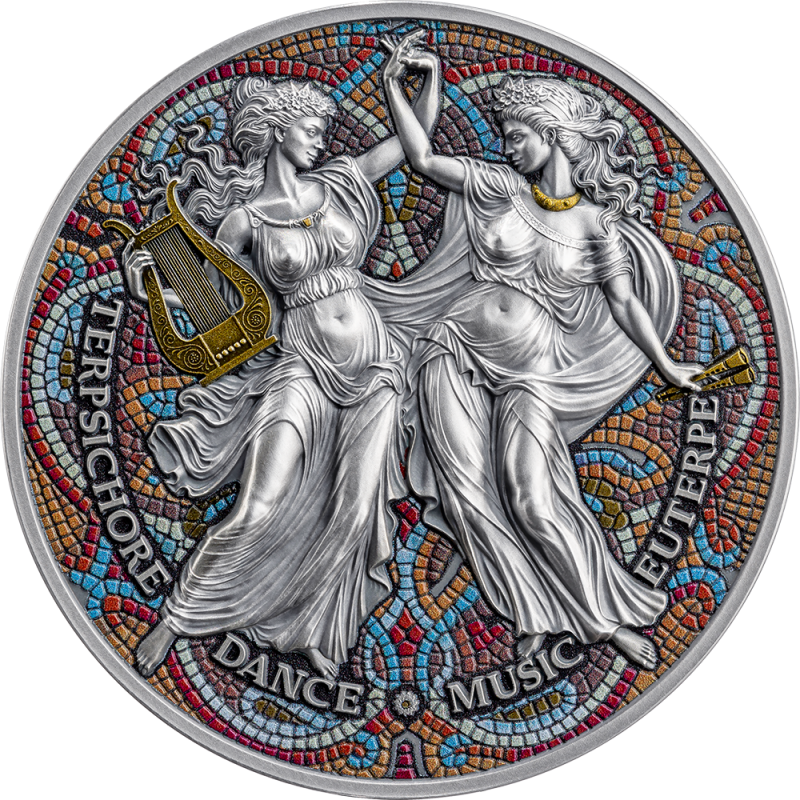 THE NINE MUSES - TERPSICHORE & EUTERPE - 2 OZ 2000 FRANCS SILVER COIN CAMEROON 2025
