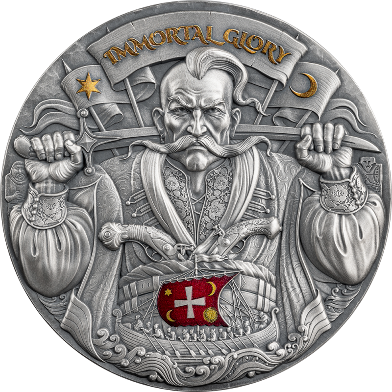 IMMORIAL GLORY 300 YEARS OF UKRAINIAN COSSACK 10 CEDIS SILVER COIN GHANA 2025