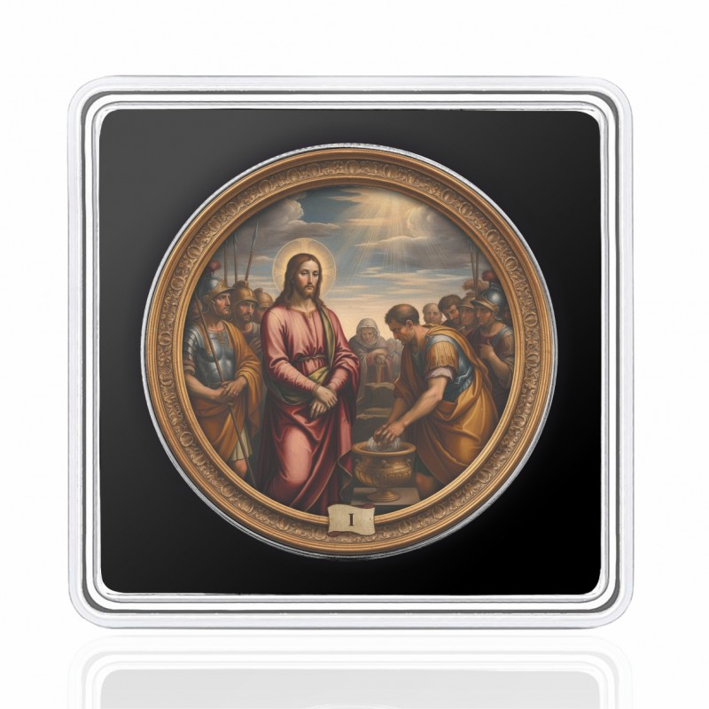 DROGA KRZYŻOWA SERIA 15 STACJI STACJA 1 JEZUS SKAZANY NA ŚMIERĆ 1 OZ 1 DOLAR SREBRNA MONETA USA 2026